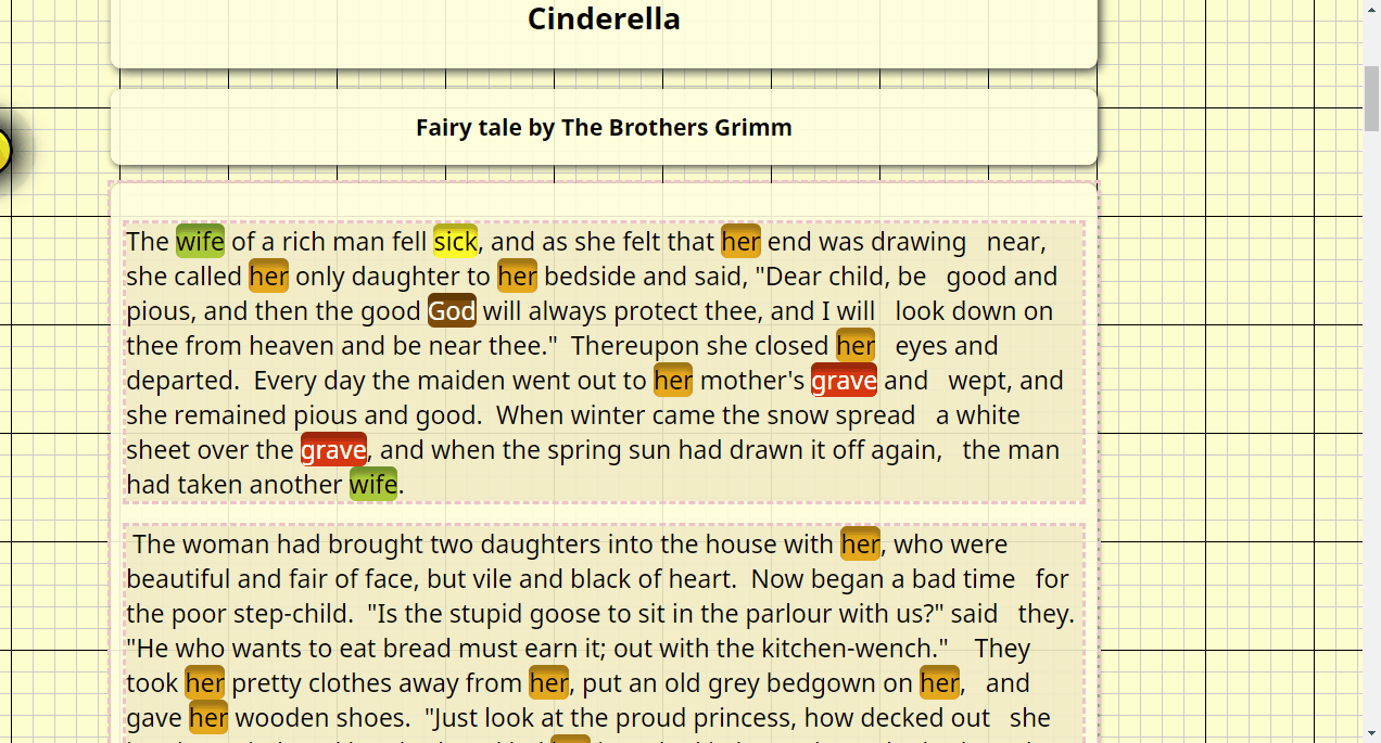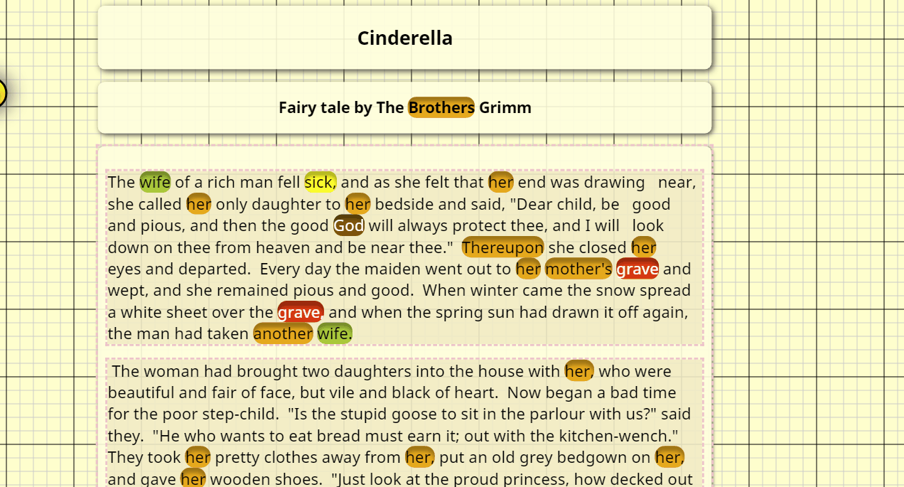 "The good into the pot,Then two white pigeons came in by the kitchen-window, and afterwards the turtle-doves, and at length all the birds beneath the sky, came whirring and crowding in, and alighted amongst the ashes. And the doves nodded with their heads and began pick, pick, pick, pick, and the others began also pick, pick, pick, pick, and gathered all the good seeds into the dishes, and before half an hour was over they had already finished, and all flew out again. Then the maiden carried the dishes to the step-mother and was delighted, and believed that she might now go with them to the festival. But the step-mother said, "All this will not help thee; thou goest not with us, for thou hast no clothes and canst not dance; we should be ashamed of thee!" On this she turned her back on Cinderella, and hurried away with her two proud daughters.